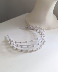 TRIPLE STRAND BEAD AND MESH CROWN : WHITE